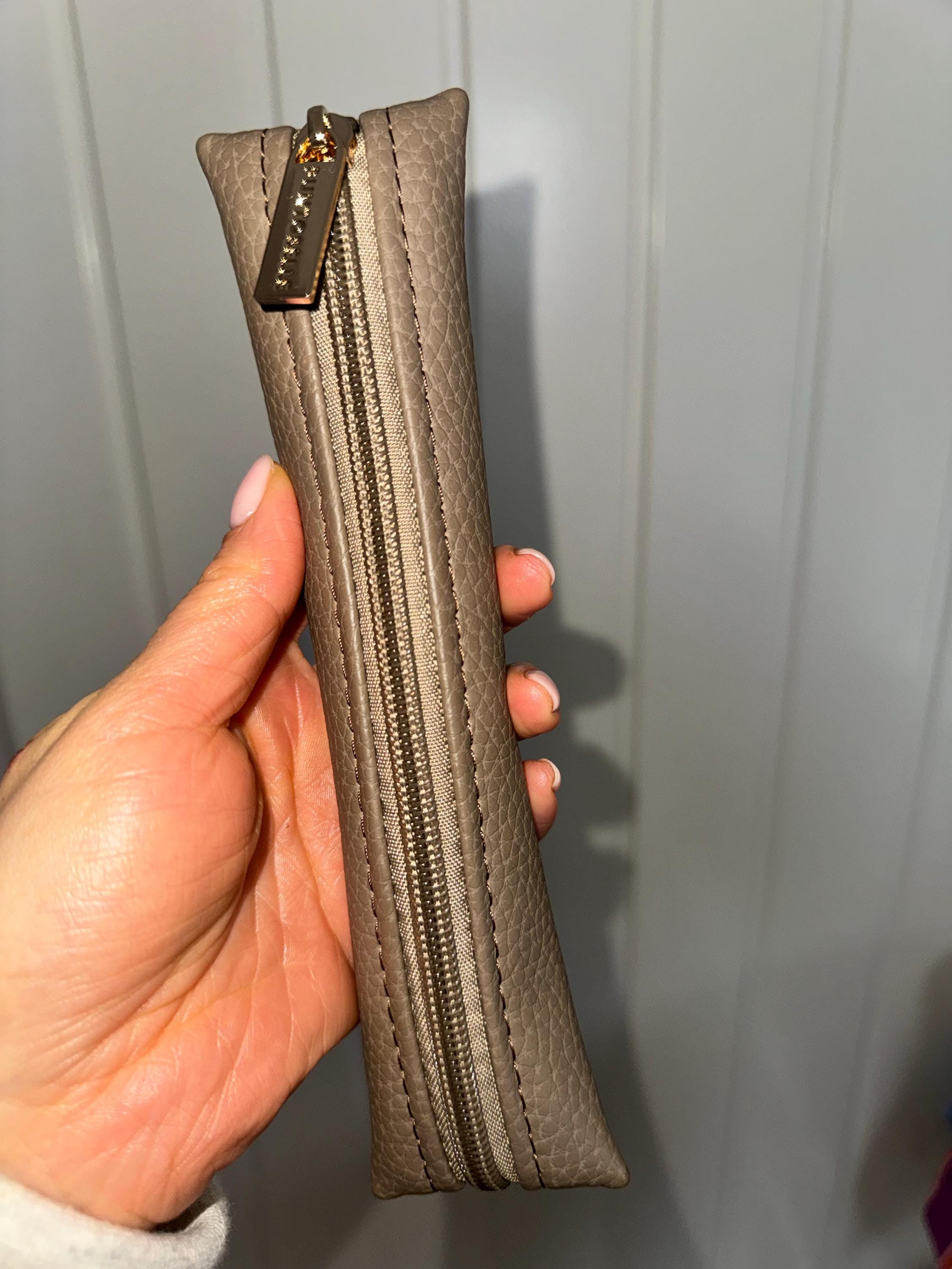 These skinny pencil cases are handmade from genuine eco-friendly leather, lined with black wipeable nylon fabric and have a choice of gold or silver hardware (metal zipper slider). Fill them with pens, graphics tablet pens, pencils, and other stationery. Or use them for storing diabetic/medical supplies, makeup and or makeup brushes. Their slim shape means they can slip into your bag without taking up too much space.